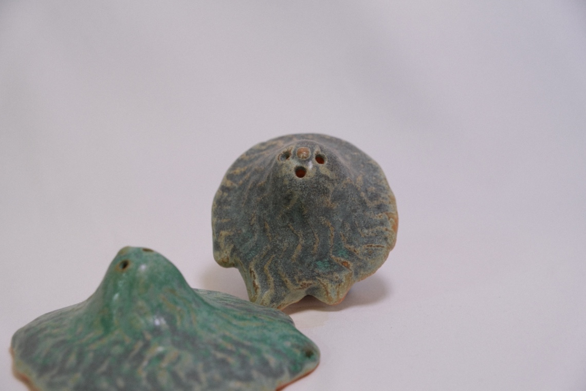 頭から芽吹いているのが可愛い。児玉さんと庭き千さんは鉢でもコラボをしていて赤と緑の縄文鉢をリリースしている。きつねとたぬきですね。