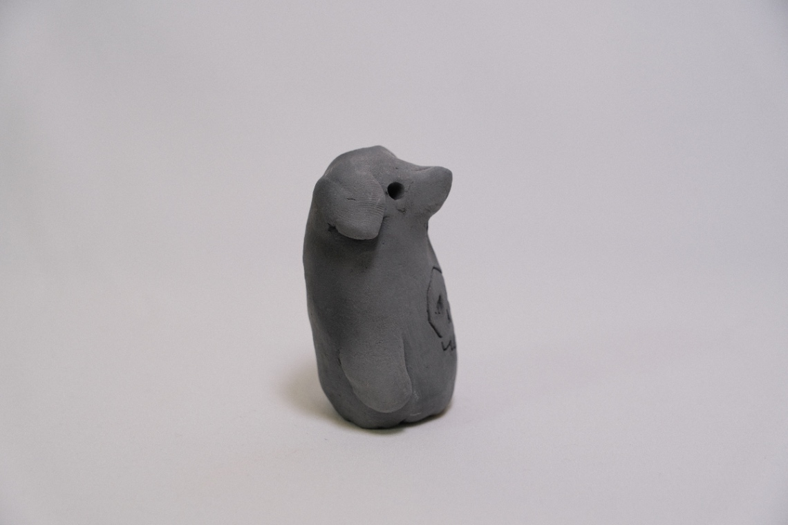 土の練り具合や焼き加減によって同じモデルでも大きく表情が異なる点が木霊ハニワの特徴だが、この個体は荒い土で練られており、やや崩壊さん寄りの造りになっている点と、白が強く出ている焼き上がりとなっている点が相まって唯一無二の神々しさを醸し出している。