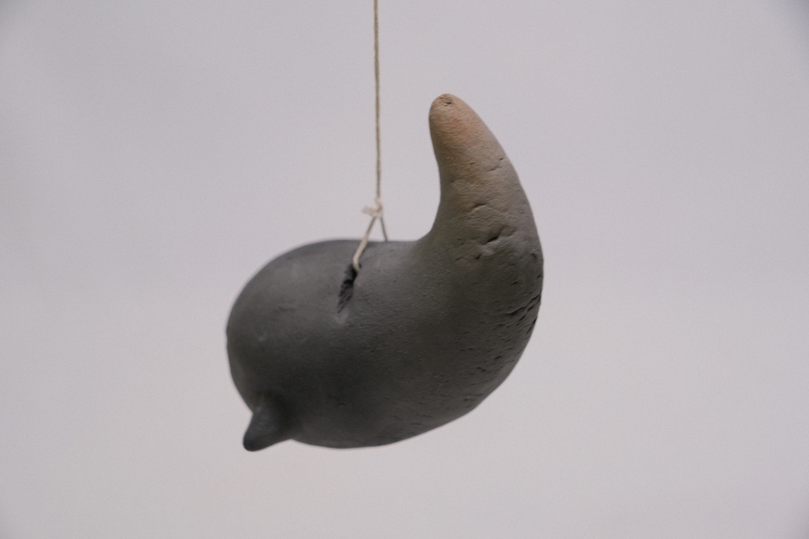 木霊ハニワ初の紐で吊るすタイプのハニワで、吊るすと重心の加減でやや下向きになりクルクルと回る姿は愛おしい。ずっこけた時と飛んだ時とでハニワの表情が変化している点も注目ポイント。